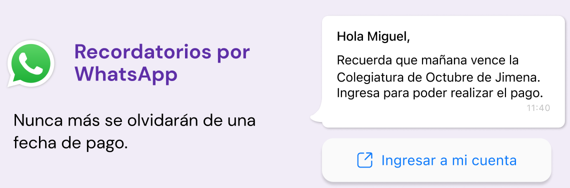 Esto amplía el panorama y les permite a los colegios ofrecerle a sus clientes un abanico de opciones para pagar colegiaturas, hacer inscripciones, y también para recordarle a los padres sobre las deudas que tienen y las opciones de las que disponen para pagar.