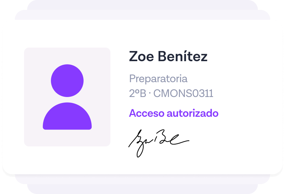 Arma credenciales físicas o digitales, con campos configurables para identificar a cada alumno con claridad en todo momento.